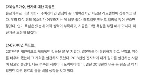 이거 슬기 인터뷰인데 확실히 약간 마인드가 다르긴함