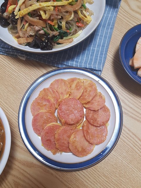 엄마가 만들어주신 뼈다귀 해장국 그리고 옛날 소세지와 함께 잡채밥상!