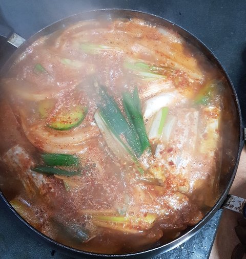 멸치랑 다시마 육수 우려내서 이렇게 보글보글 따뜻하게 아버지 저녁밥 챙겨드렸어요!