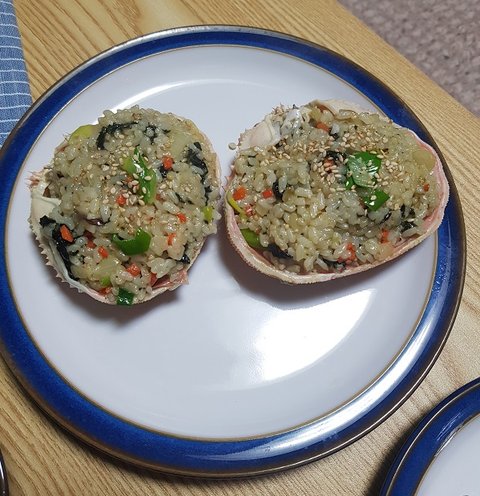 근데 딱 두마리만 받아와서 이렇게 게딱지 밥이랑 맛나게 해먹었습니다.