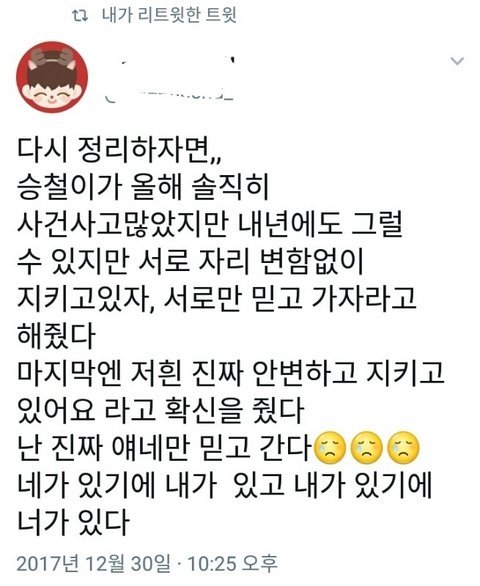 플디도 마음 먹은 거 같고 우리 요즘 들어 미담도 폭발하고 타팬들 인식도 좋아지고 있음ㅇㅇ플디가 고소도 잘하고,, 올해 병크 하나도 한 터지고 승승장구만 했으면 좋겠다나는 뭔가 2018 느낌이 좋아!