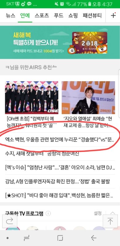 백현이 기사 다른 거 메인 떴구나 그러니 실검 오르지