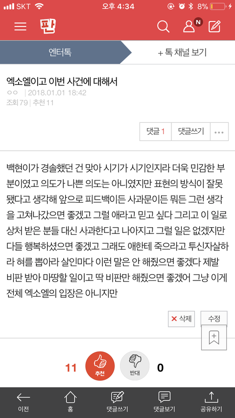 진지하게 진심으로 신발 내가 아무리 애 잘못 인정한다고 글 써도 사람들은 일반화 오져서 엑죠팬은 무조건 쉴드하네~~~ 이러네 진짜 족 같아 이거 다 내가 쓴 글인데 ㅋㅋㅋㅋㅋㅋㅋㅋㅋㅋㅋㅋㅋㅋㅋㅋㅋ