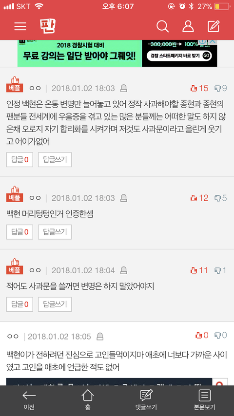 추천수 계속 올라가는 중임 야 난 다른 건 몰라도 애 사과문 변명이라 하는 건 못 보겠어