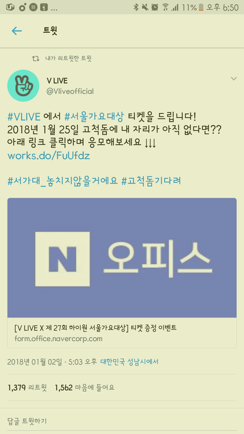 석아대 가위앱에서 티켓준대 응모해
