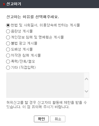 * 헌법 및 사회질서, 미풍양속에 반하는 게시물
