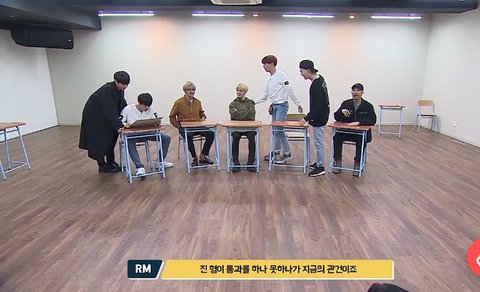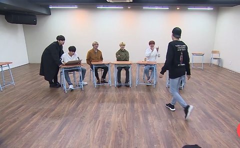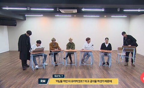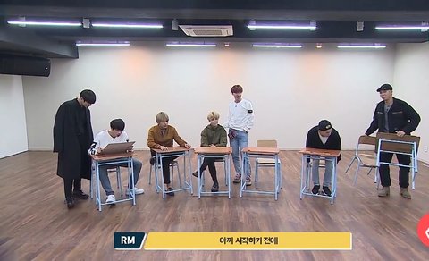 남준이가 책상 들고 오고 윤기가 옆으로 옮기니까