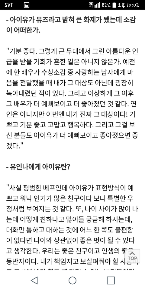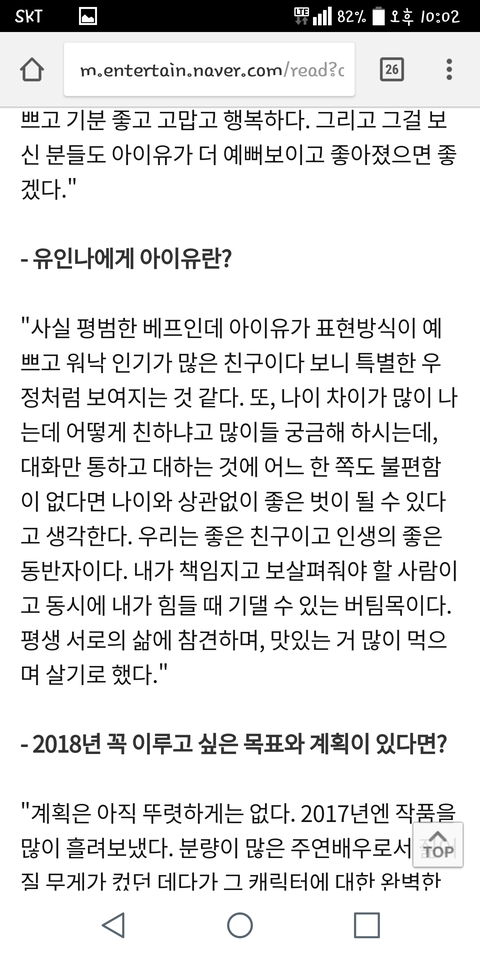 '평생 서로의 삶에 참견하며, 맛있는 거 많이 먹으며 살기로 했다.' 아ㅜㅜㅜㅜ인나찡도 지은이 못지않게 말 이쁘게하는거봐ㅜㅜ아이유인나 뽀레버..♡