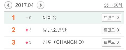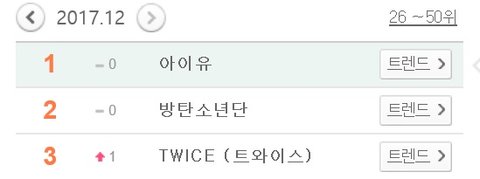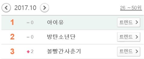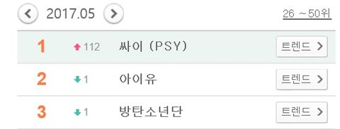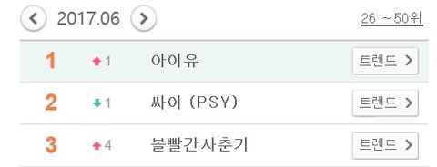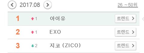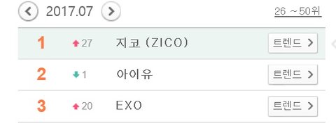 2017 멜론 월별 가수검색 1~3위