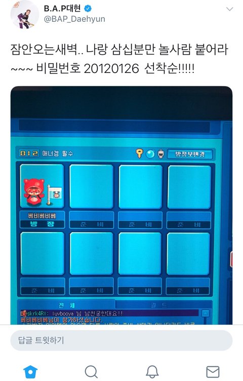 방 비번부터 닉네임 베비베비베ㅠㅠㅠㅠㅠㅠㅠㅠㅠㅠㅠㅠ미챴다ㅠㅠㅠㅠㅠㅠㅠㅠ너무귀여워ㅜㅜㅠㅜㅠㅠㅠ 지금깔면 늦을까..?ㅎㅋㅋㅋㅋㅋㅋㅋㅋㅋㅋㅠㅠㅠㅠㅠ 정대현이랑 게임하면 어떤 기분이야 혹시 들어간베뷔있는면 상세한후기부탁^^ㅋㅋㅋㅋㅋㅋㅋㅋ
