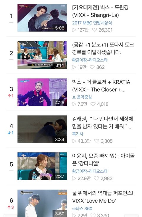 무려 2016년 영상인 Love me do가 6위, The closer가 3위라는거야 ㅠㅠㅠ