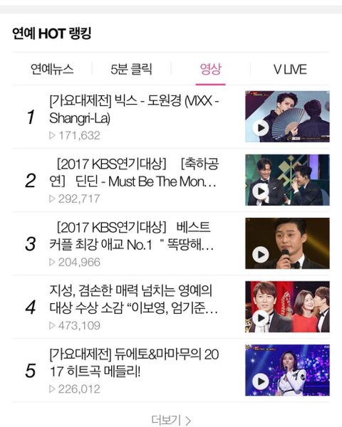 이렇게 연예 HOT랭킹 영상에서 1위도 하고