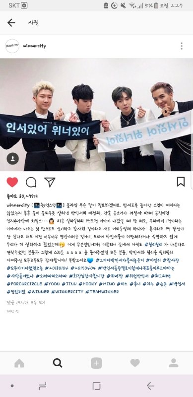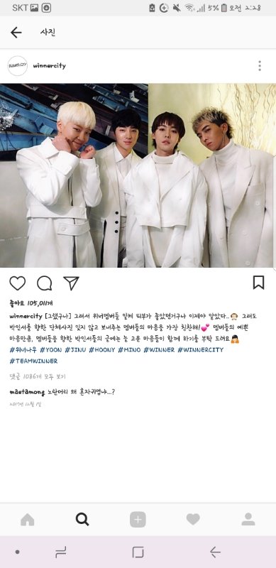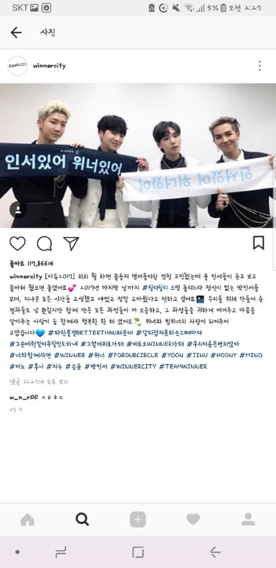 위너 자기들이 올리는 인스타가 있어 winnercity라고 2016년부터 하는 인스타 계정이 있는데 원래 목적이 팬들과의 소통 계정이기도 한데 진짜보면 웃음만 나고 멤버둘이 너무 돈독한게 보여,,진짜..