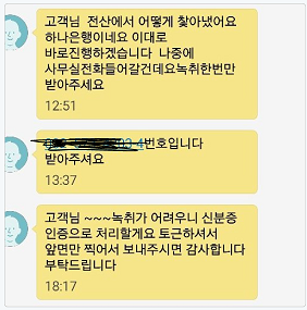 나한테 계속 계좌번호 달라고 전화오고 문자오고 난리가 남.