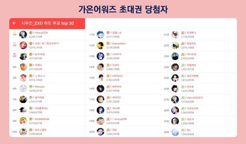 최애돌에서 하트기부 많이한 시우민팬 30명한테