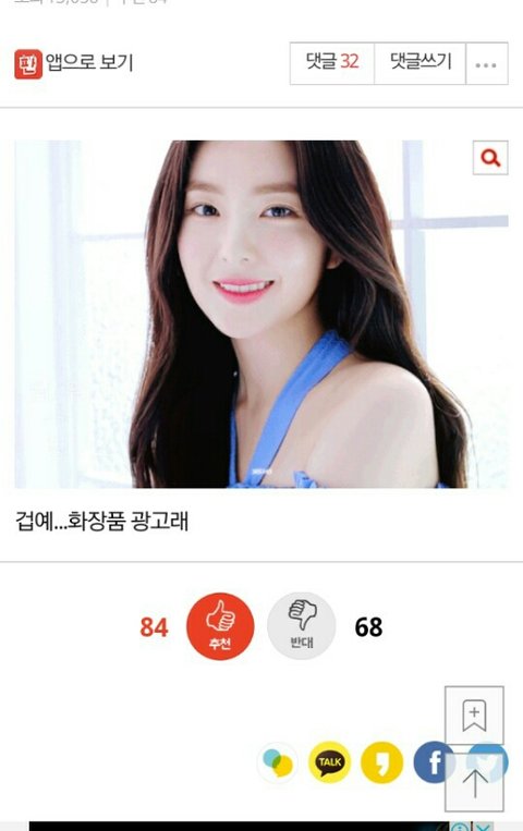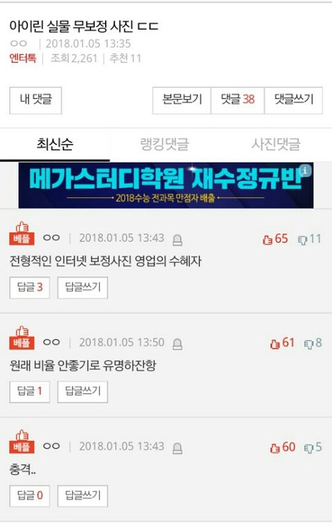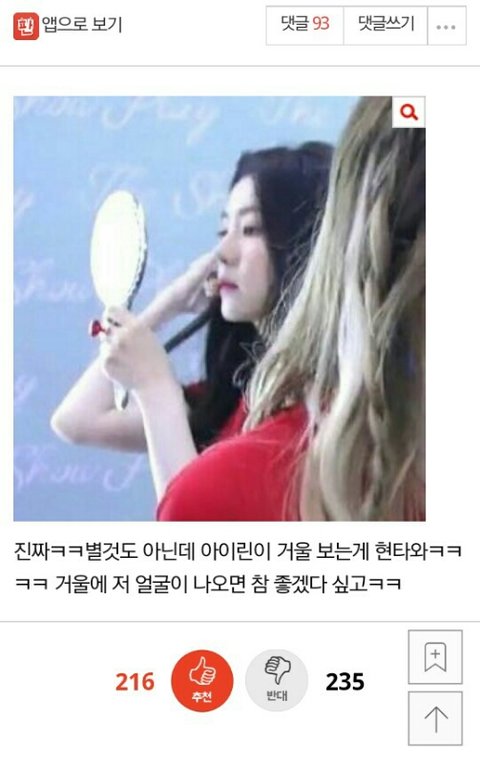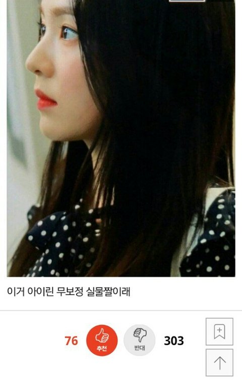 아이린 무보정 실물짤이 예쁘다는 글에 반대수