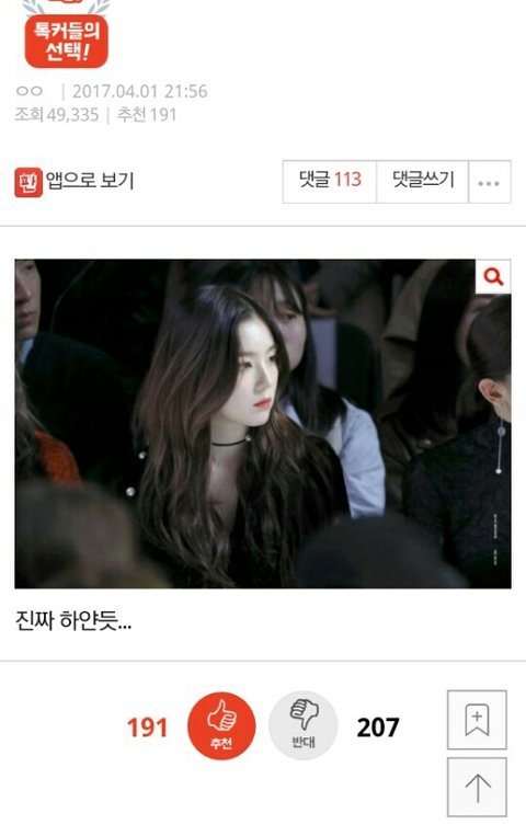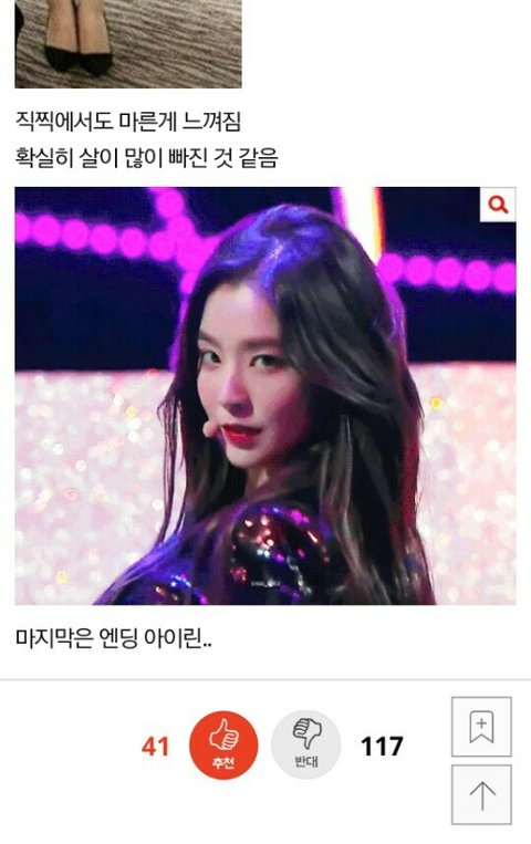 아이린 하얗다고 짤 1장 올려놨는데 반대수