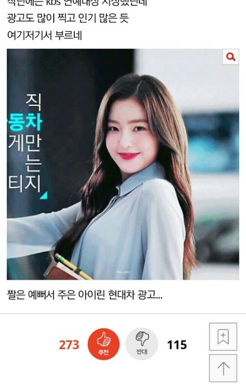 아이린 흑발 염색한거 잘 어울린다는 글에 반대수