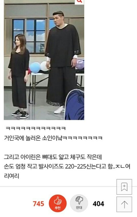 아이린 체격 진짜 작다는 글에 반대수