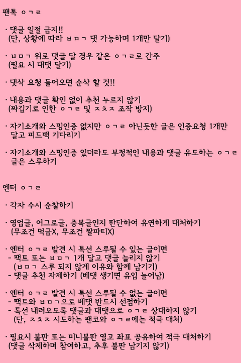 그래서 내가 아래처럼 팬톡과 ㅇㅌ의 ㅇㄱㄹ관련 공지 부분 내용을 보완 해봤어~
