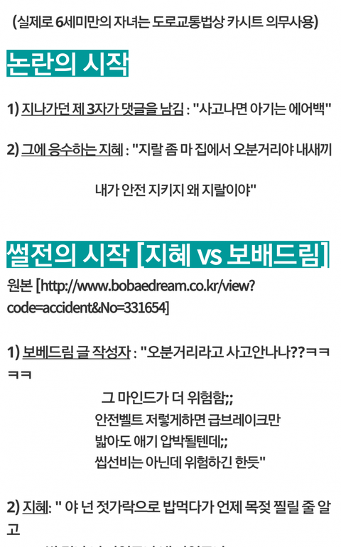 또 외질혜 앞좌석 아기 안고 안전벨트 사건.