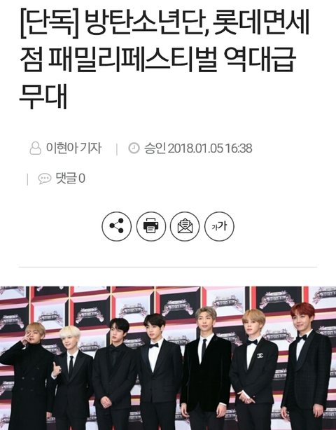 방탄이들 로떼면세페스티벌 오프닝으로 나온다는데