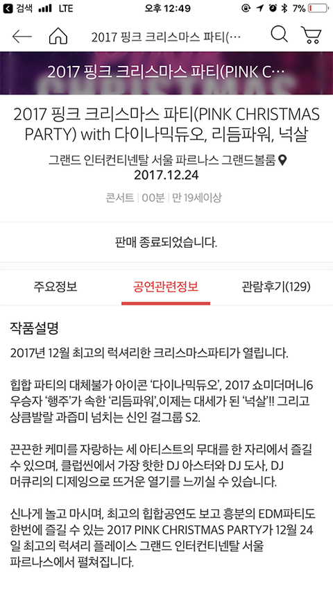 콘서트명은 핑크크리스마스파티였고, 오후 10시부터 시작해서
