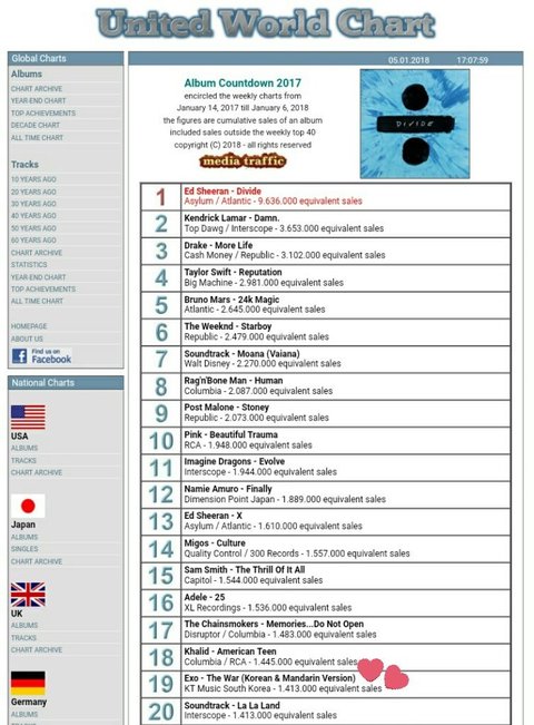 어 세계 앨범판매량 순위 19위 ㅊㅊ더워 7월에 나온거 맞냐ㅜㅜ