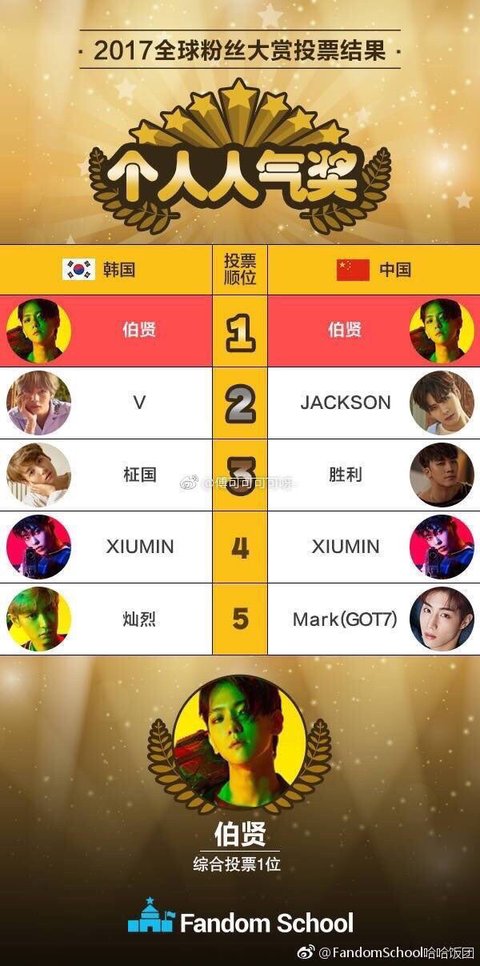 백현 팬덤스쿨 순위 한국 중국 둘다 1위 ㅊㅊ