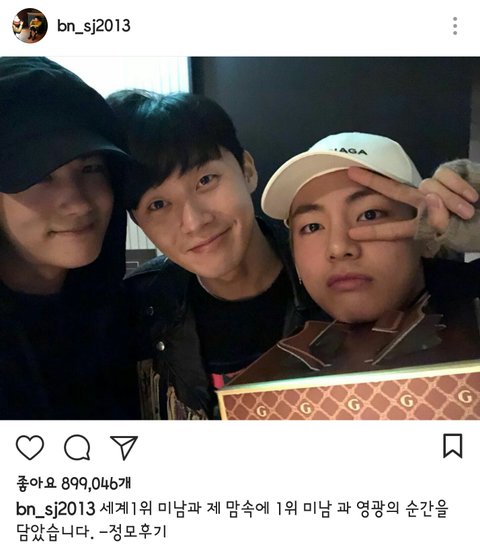 그리고 저번에 태형이가 올린 노래의 주인공은 박1서준님의 불알친구분 ㅎ