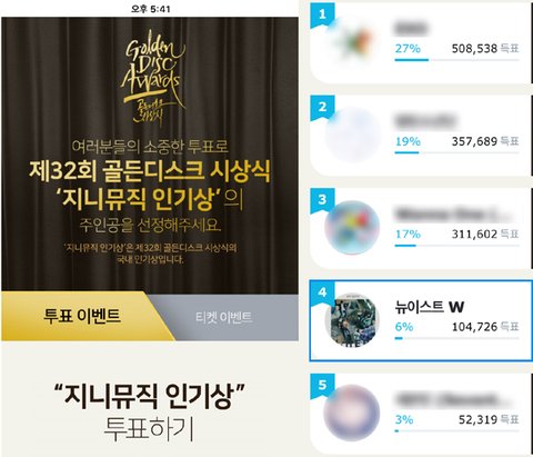 4. 가/온/차/트/뮤/직/어워드 인기상 투표(2018.01.08~2018.02.11)