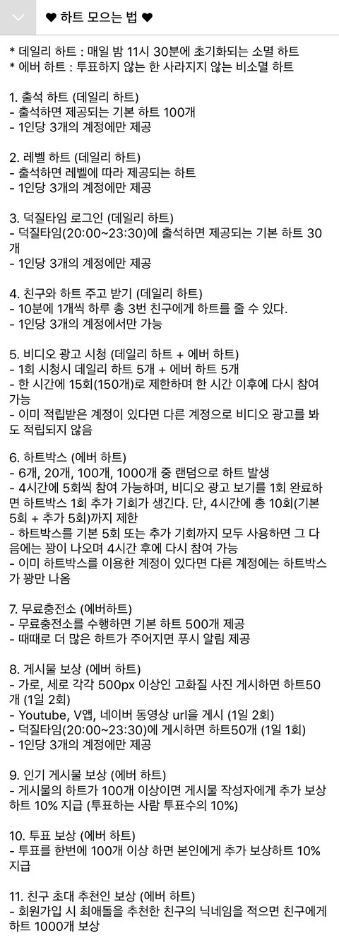 자자~ 이게 그날그날 투표할 수 있는 데일리하트 말고 에버 하트는 차곡차곡 모아놔야 하는 거니까 찬찬히 읽고 준비해 주세요~