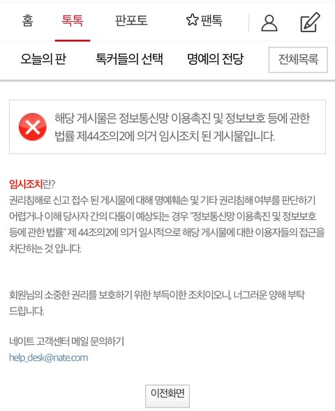 이렇게 논란이 됐던 하나의 게시글이 없어졌습니다.