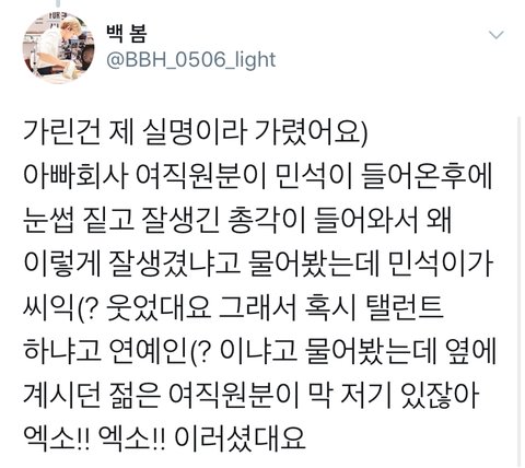 좀전에 시우민 새목격담 뜸(↓밑에 어그로 개소리왈왈 무시해)