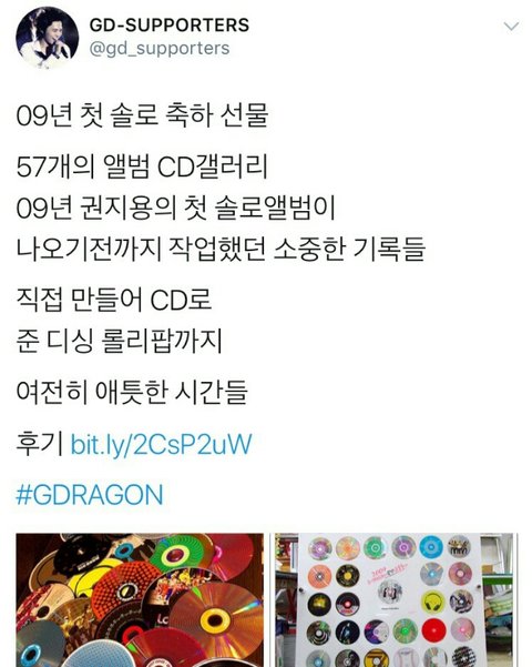 알고보니 지디 팬페이지 '권지용서포터즈'에서 2009년도에 지디 첫 솔로 축하 선물로 준 CD갤러리장의 CD들
