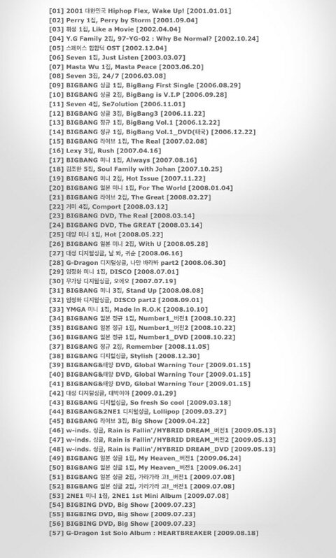 이건 지디가 2009년 첫 솔로앨범 내기전까지 참여했던 앨범들 목록 (빅뱅 데뷔전부터 빅뱅 앨범까지)