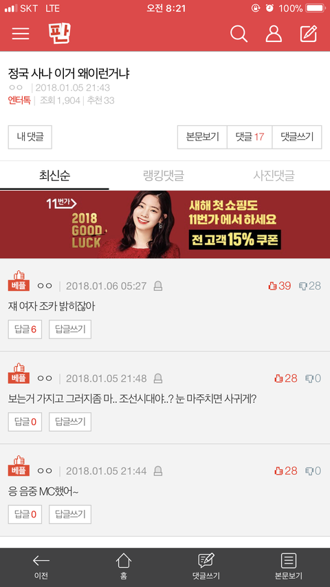크게 차이안나니까 반대누르고 다른 댓듯 베댓올려줘