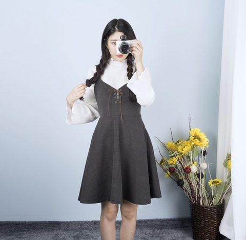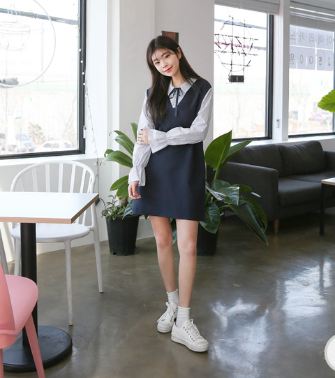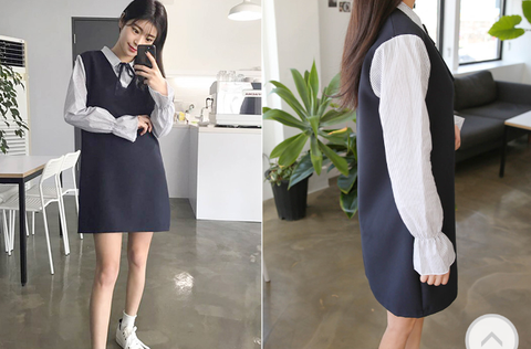이 옷은 이쁘긴한데 앞에서 보면 정말 이쁜데 옆에서 보면 사진처럼 통이 커서 핏은 좀 별로예요 ㅠㅠ