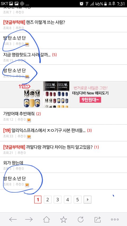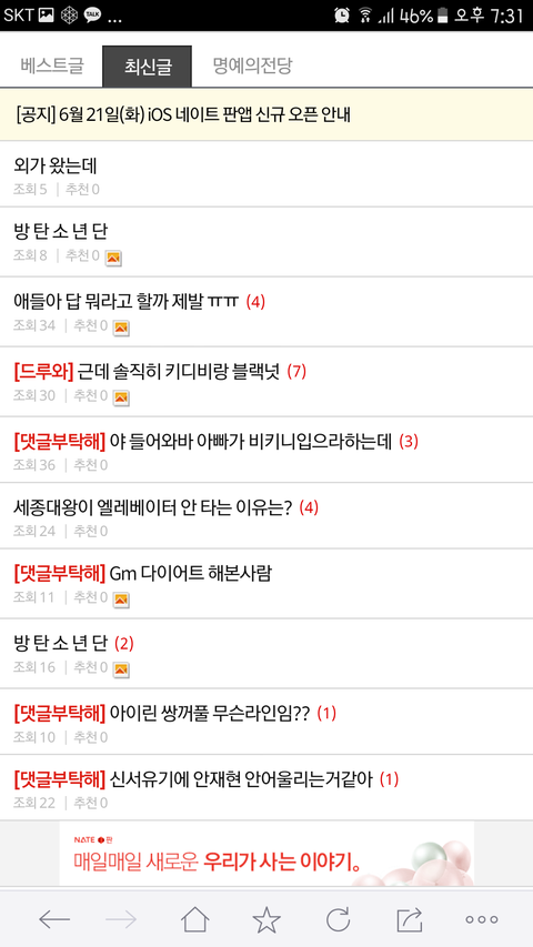 몇몇 애들이 요즘 10대 판에 연예인 글 올라와서 글올리지