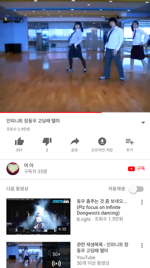 유튭에 인피니트 텔미치니까 저 영상 나오길래 저 영상에 가운데 남자분 동우맞아??