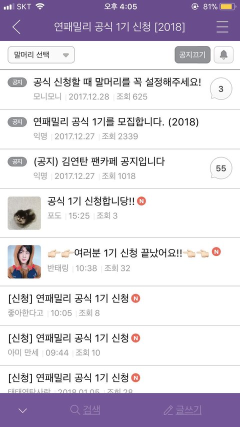 팬톡 검색 보기