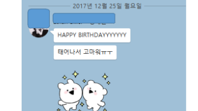 (내가 생일이 크리스마스거든. 근데 한국말도 잘하는 편인데 태어나줘서 고맙다는 말을 보냈는데