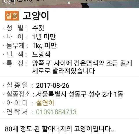 사진두개입니다ㅠㅠ서울에 사시는분들은 특히 주목해주시면감사하겠스빈다 인터넷보다가 속상한소식을 발견해서요 할아버지가 걱정이 많으실텐데..노랑이도 추울텐데ㅠㅠ 관심부탁드립니다.