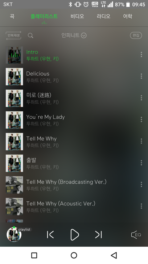얘들아 멜 반복재생 무조건 on해야돼