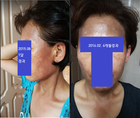 그 이후, 다음날부터 얼굴이 간지럽고 붉어지더니 점점 피부색이 흑색으로 변하여 상기 사진과 같이 착색이 되었습니다.