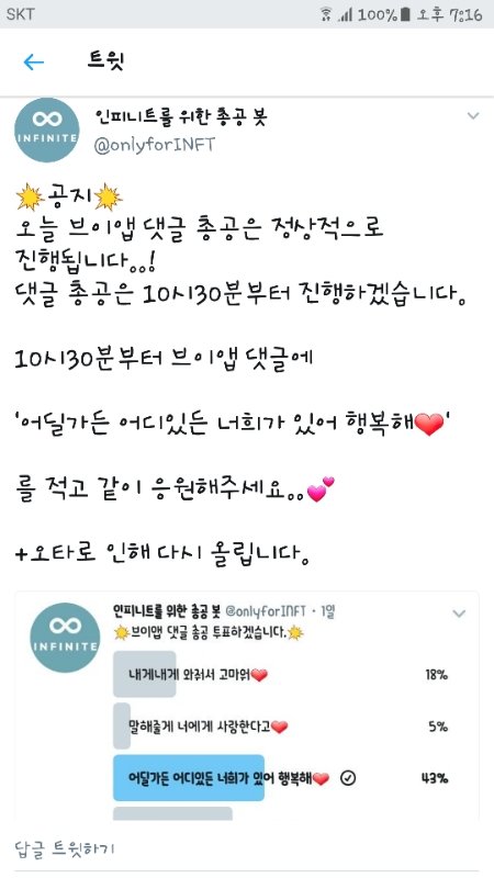 댓글 보고 좋아할 인피니트 생각하면서 열심히 댓 달자!ㅎㅎ