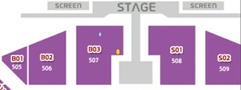 반B03 18열 8~9번(돌출무대에서 2열) 노란색