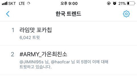 한국트렌드 2위 떴엉