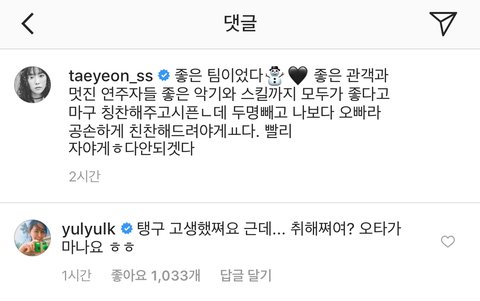 와중에 유리 댓글 덤덤하게 취해쪄여? ㅋㅋㅋㅋㅋㅋ
