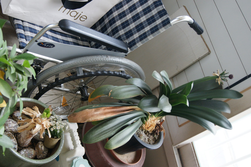 이젠 휠체어 옆의 꼴랑 3개만 남은 화분들을 붙들고 하염없이 슬퍼하고 있어요.ㅠㅠ